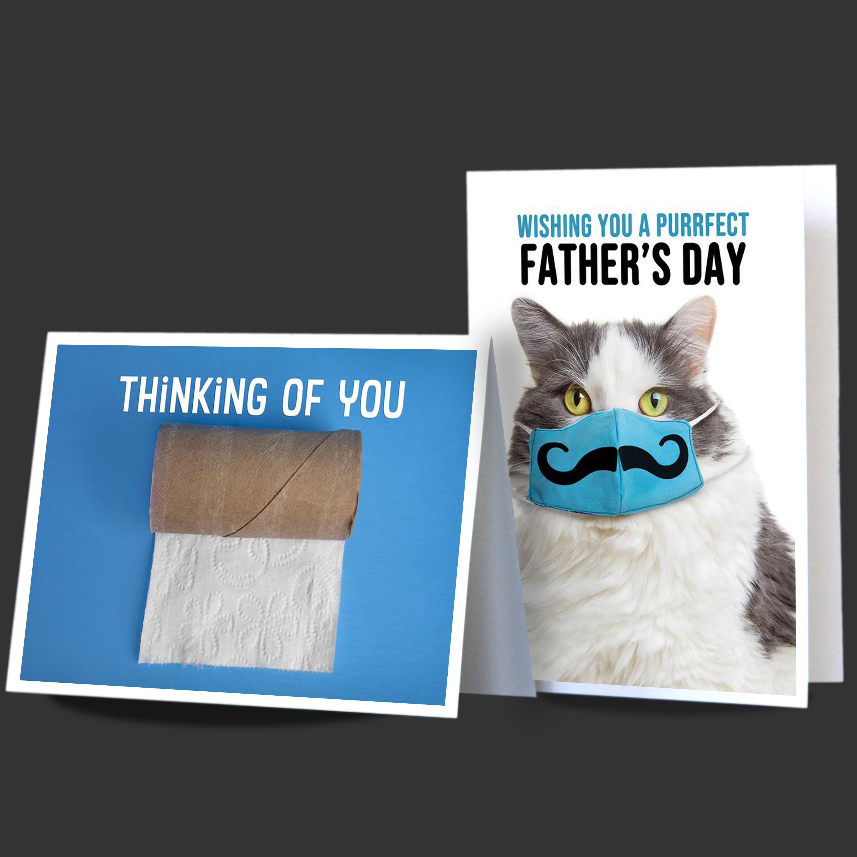 “When I decided to create greeting cards based on the coronavirus situation, I was a little hesitant at first,” says Dominick of Pittsburgh, PA. “I tend to favor making cards with a bit of humor and this pandemic surely was no laughing matter. But, after realizing that there was a somewhat humorous media frenzy over the toilet paper shortage, I decided to get a few of my spare rolls out and photograph them to see what happened.”